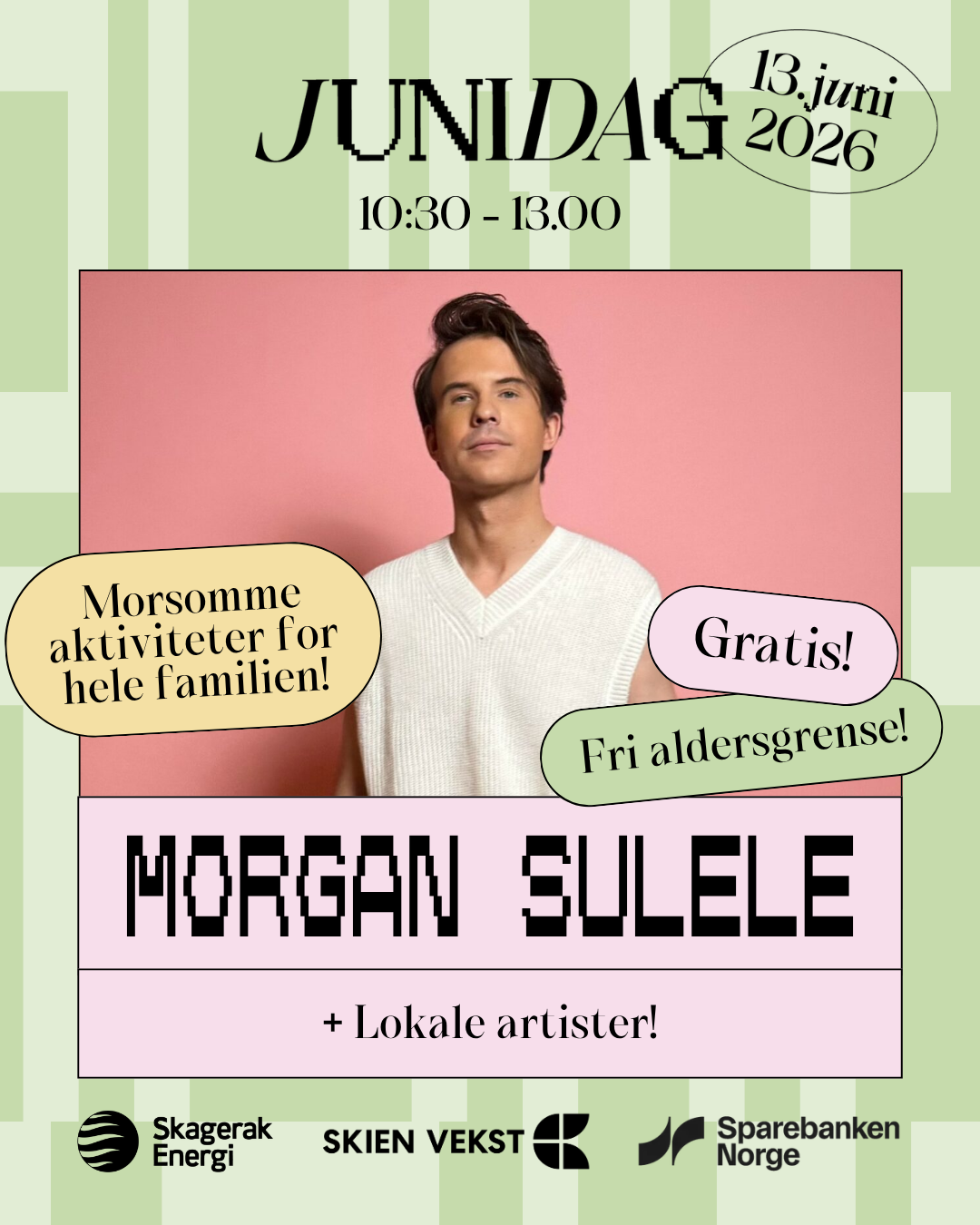 Takket være solide samarbeidspartnere som Skagerak Energi, Sparebanken Norge og Team fritid, kan Juninatt nok en gang invitere stor og små til et gratis og inkluderende dagtidsarrangement.